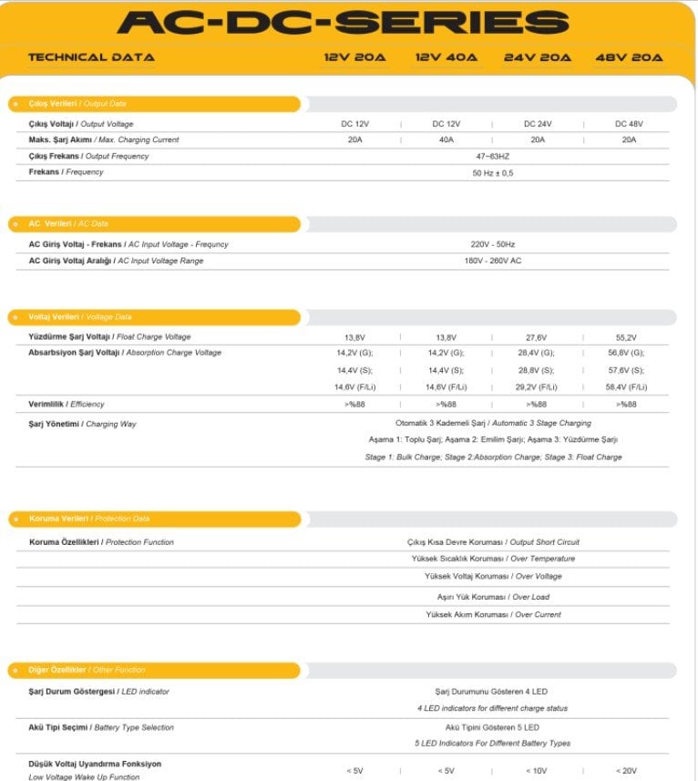 AC-DC Akü Şarj Cihazı 24V-20A(Lifepo4-Gel-Agm)